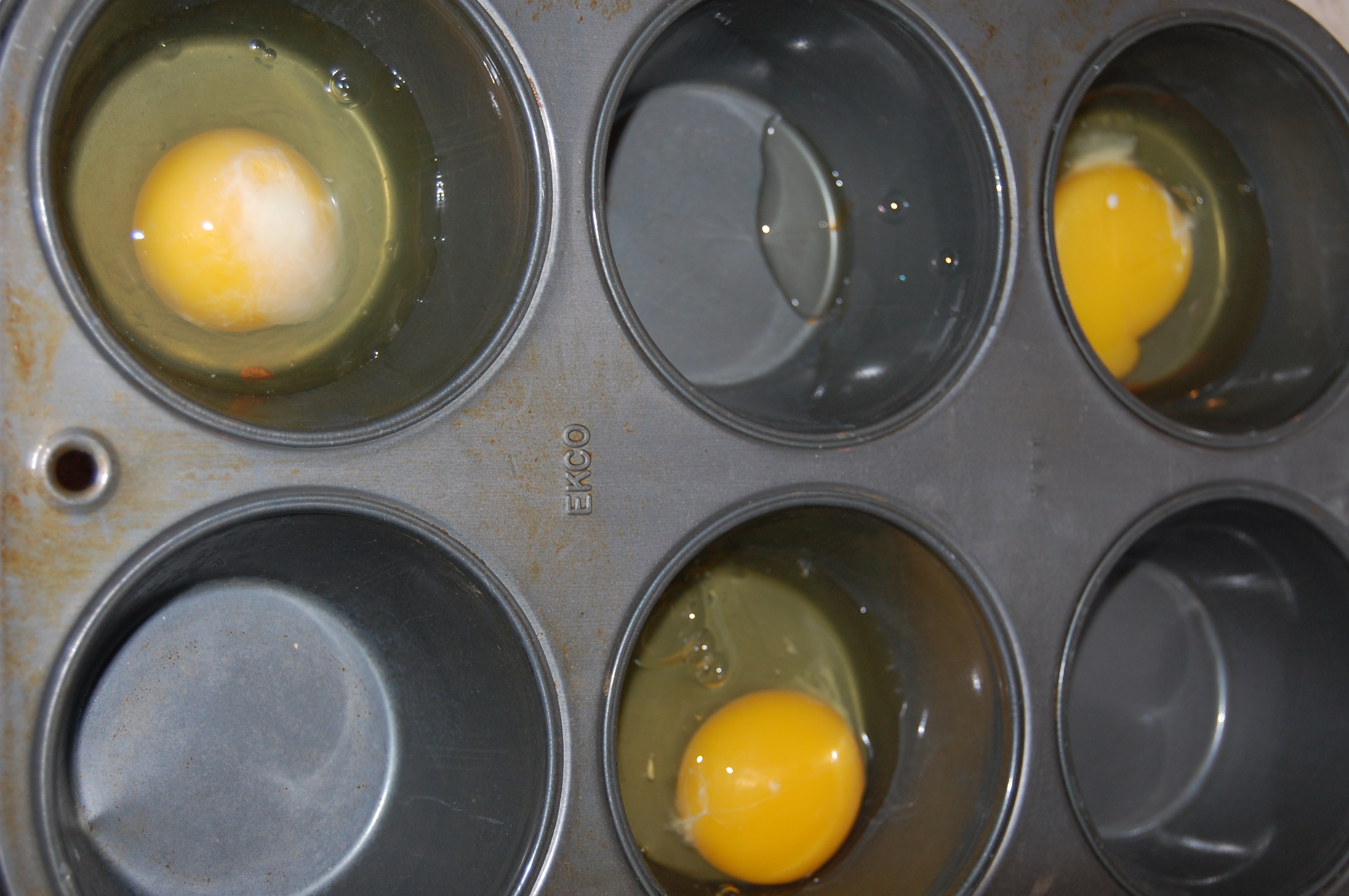 heat oven to 350, put eggs in a muffin tin and bake for 10-15 min. I love runny yolks but can’t eat them right now because of miss Lucy so I cooked them a little longer