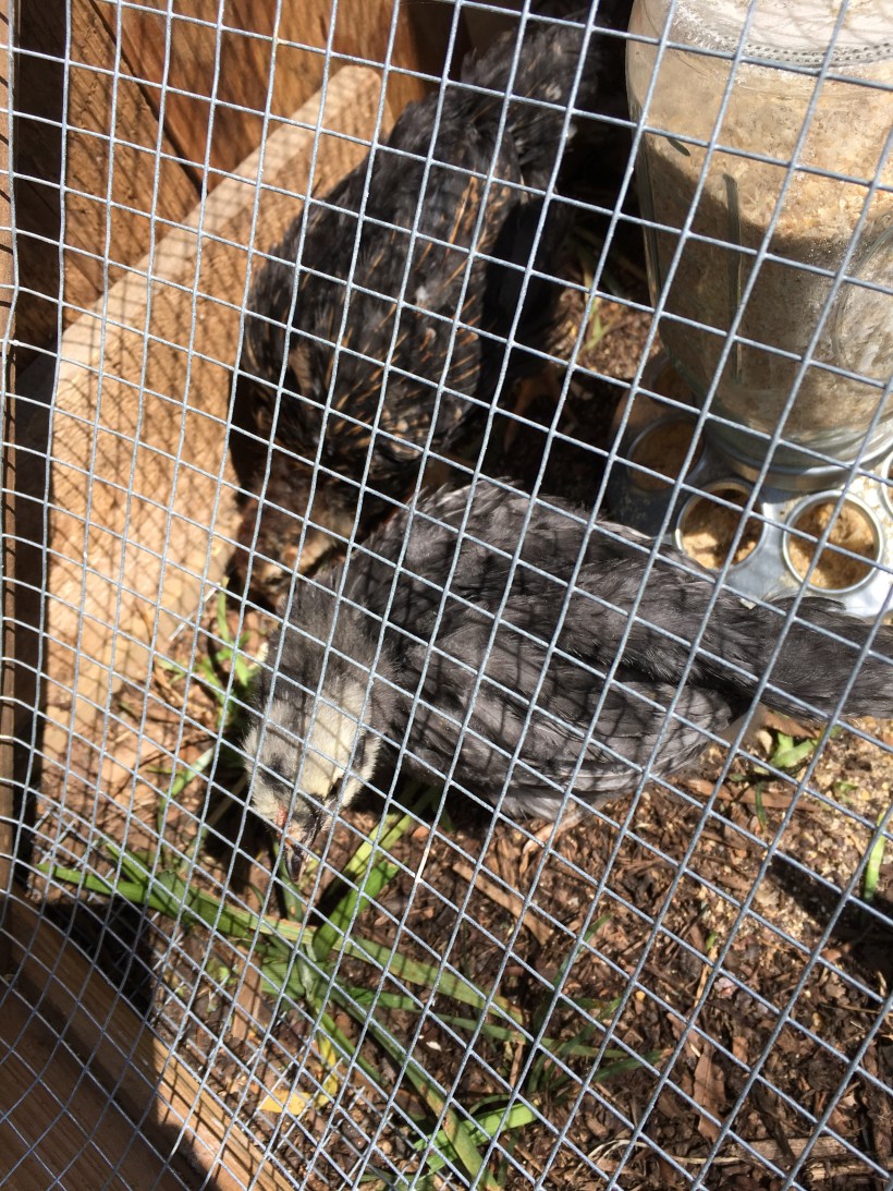 The girls are in their natural habitat! Outside, free to eat bugs, scratch up dirt and they have so much more space!