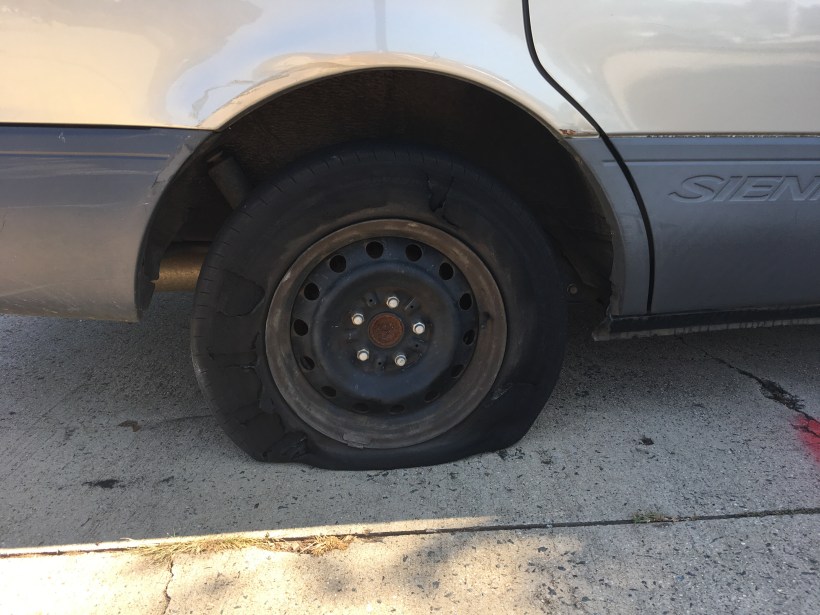 Today I was on my way to a client and I heard a huge pop and a jerk at the wheel and the scrape of a rim. Luckily I wasn’t on 77, as I usually am, and wasn’t going fast, nor did I have kids in the car! I pulled over as quickly as I could and popped the trunk to start digging out the jack and the tire iron, but they weren’t there. I knew exactly where they were, the ex, never good about putting things back where they came from, had borrowed them and never put them back in their place. So here I am, blown out tire, no tools and late for a client. So per the story, and my usual reaction, I could have lost my shit, sobbed, stomped my feet, but it wouldn’t have fixed anything and it would have led me down a path of even more stress, I even did my absolute best to let go of the fact that I could have fixed it myself if my things had been returned.